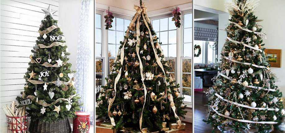 Вариант, как можно стильно украсить елку. Текущий тренд декорирования новогодней красавицы. Такой способ подходит для оформления этого праздничного атрибута в торговых центрах. Оригинально смотрится в витринах магазинов, бутиков. Чем украшают:
