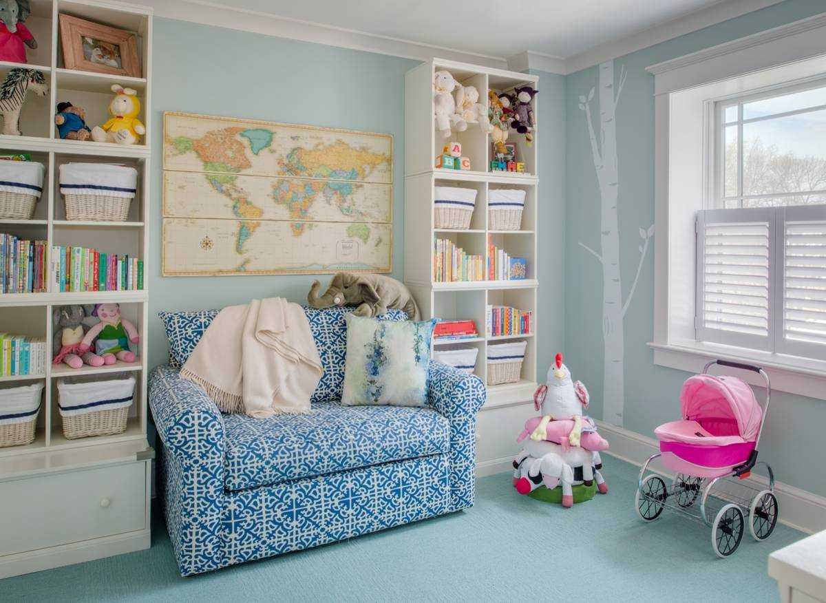 Совет! Пастельные цвета обивки помогут зрительно расширить помещение и придадут ему воздушности. Тяжелые темные и очень яркие оттенки отрицательно воздействуют на психику ребенка.