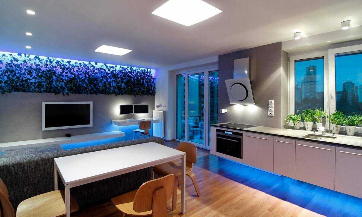 Кроме этого, при помощи подсветки того или иного оттенка легко добавлять жилищу мнимого тепла или прохлады, романтизма или страсти, деловитости или задушевности.