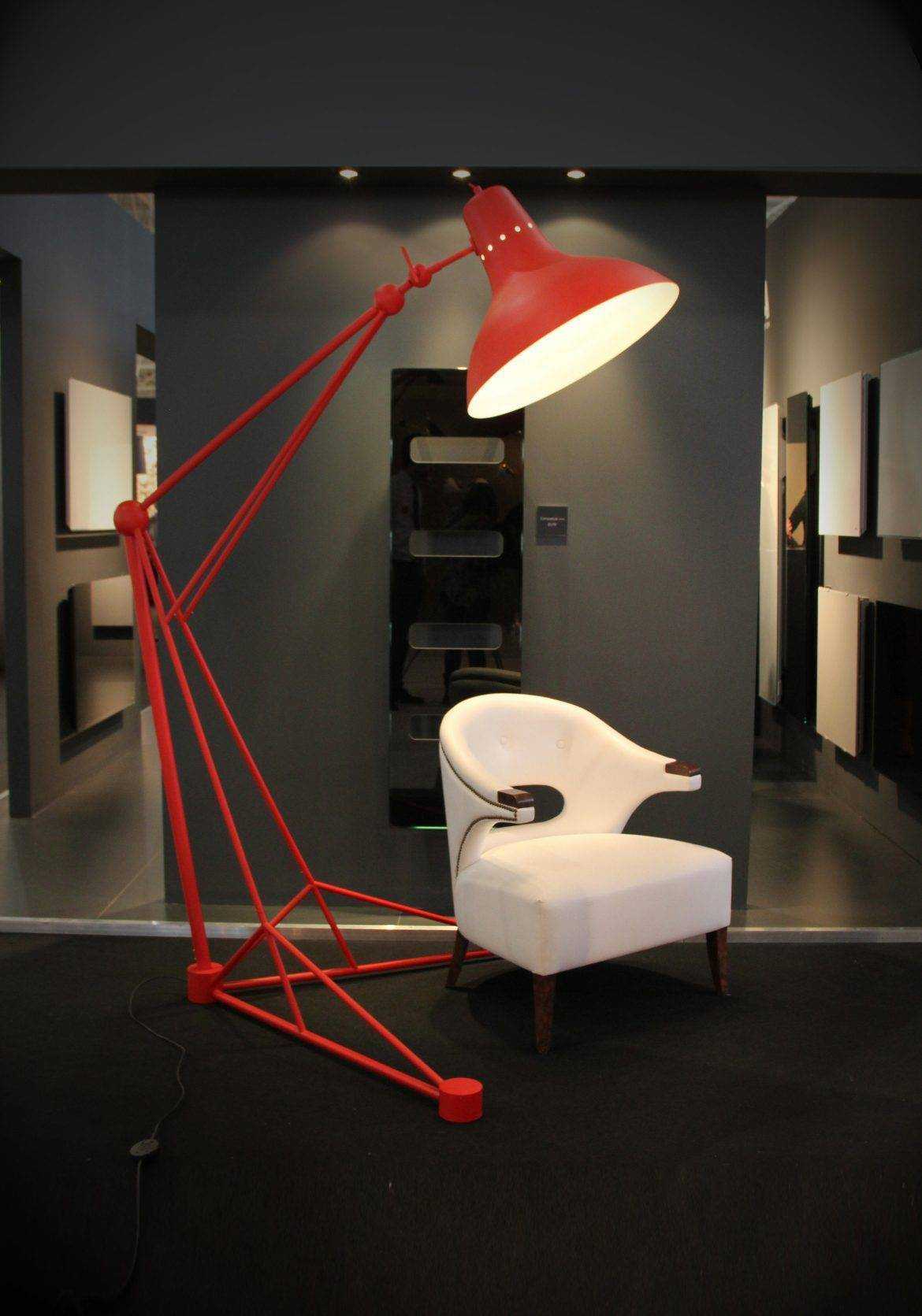 Такие светильники делают из металла. Они прочно и устойчиво стоят на полу, хотя могут иметь тонкие изогнутые ножки.