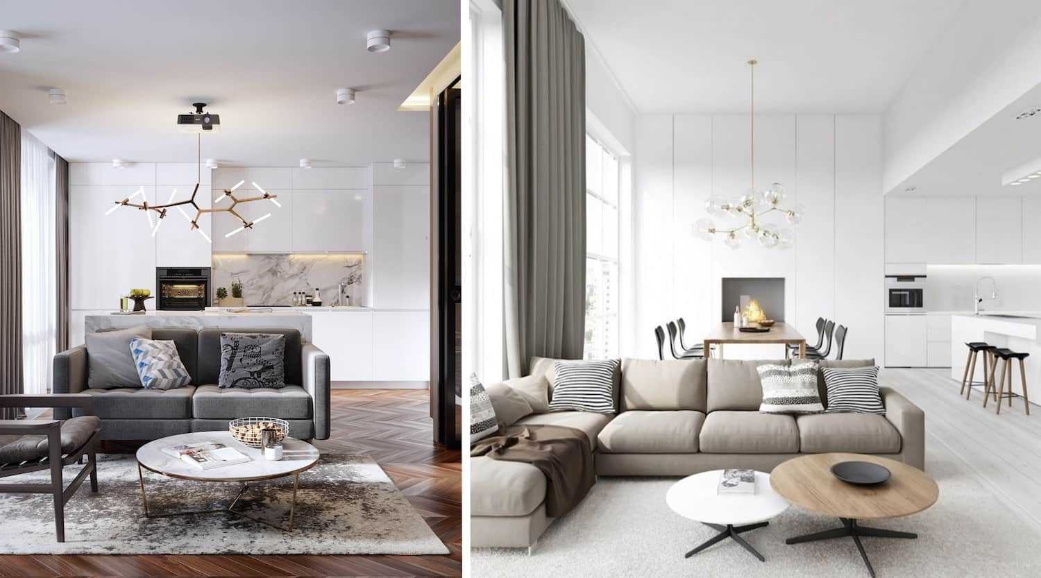 Подобные стили идеально подойдут для маленькой гостиной. Такое оформление позволит сэкономить квадратные метры, визуально увеличить площадь, но сохранить уют и практичность.