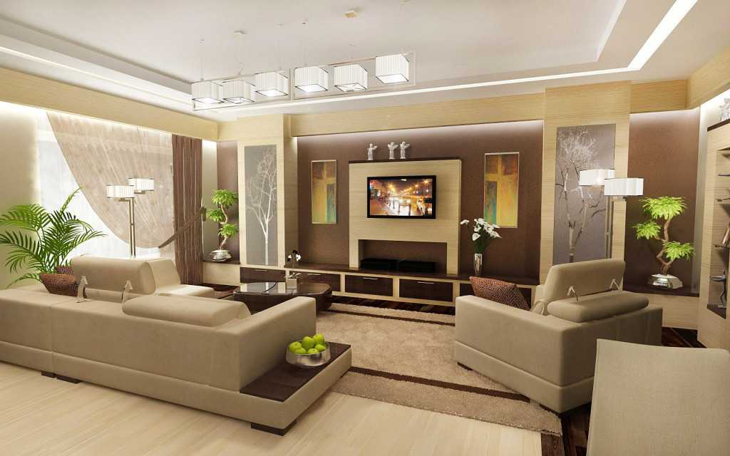 Цветовые сочетания также подвержены изменениям. Можно отметить несколько самых актуальных вариантов, которых и придерживается большинство профессионалов. Что касается современных идей интерьера зала, лучше всего применять такие решения: