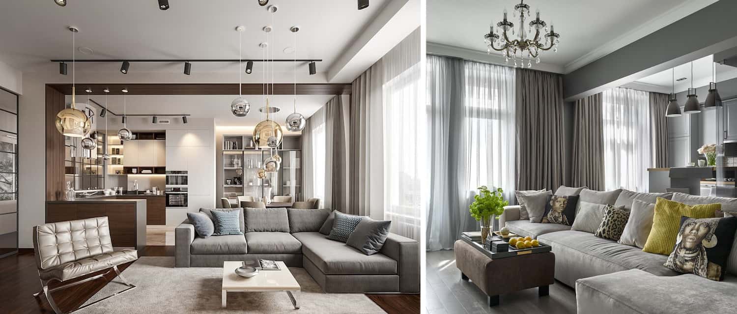 Серая мебель для гостиной, в каком стиле, какого цвета?