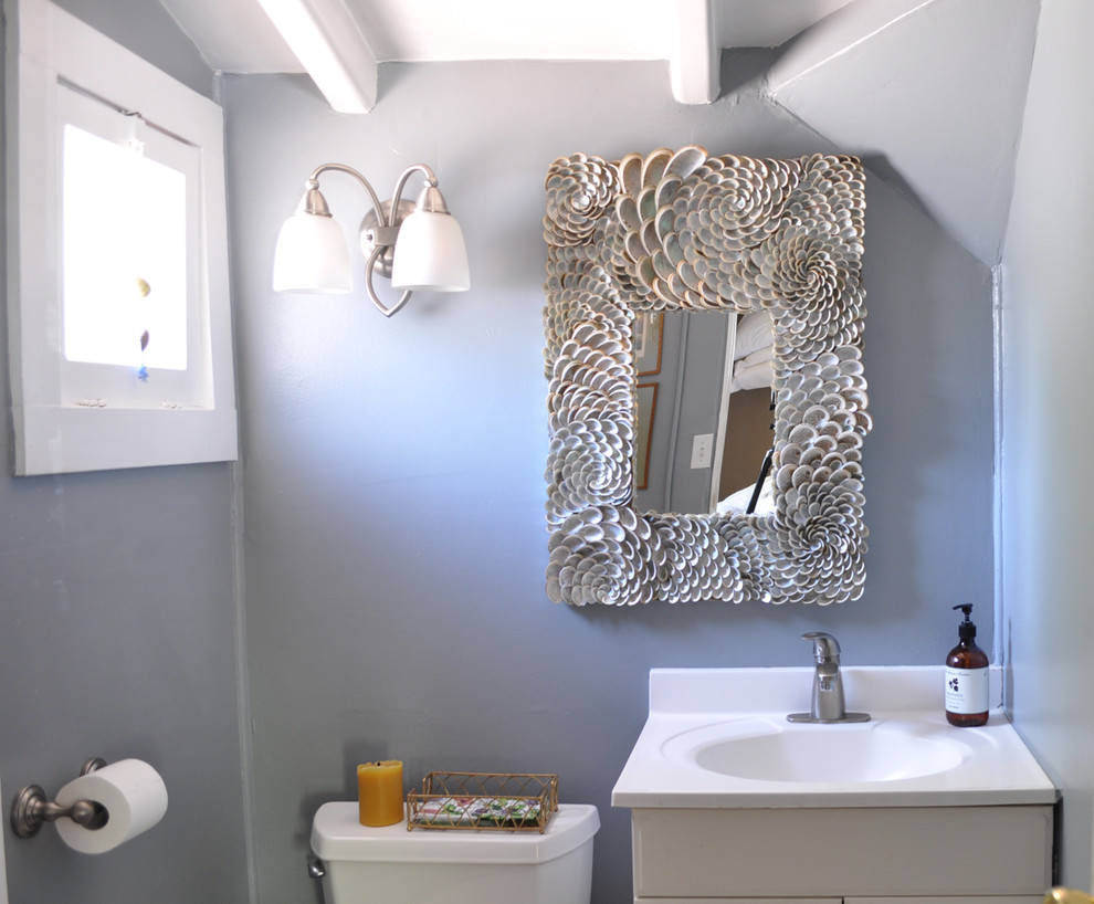 Попробуйте украсить ракушками зеркало. Для этого вам понадобится только клеевой пистолет и достаточное количество природного материала.