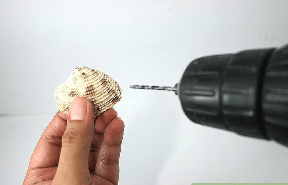 Чтобы сделать некоторые виды поделок из ракушек (н-р, музыку ветра, гирлянду, бусы, браслет и прочие украшения), в них нужно просверлить отверстие. Задача эта довольно простая, сложность состоит лишь в том, что ракушки могут треснуть или расслоиться в месте сверления.