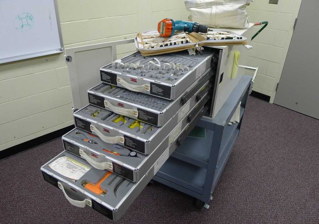 Открытый контейнер без крышки — лоток, хорош тем, что весь собранный в нем инструмент находится на виду. К сожалению, лотки не всегда оснащены ручками, что создает некоторые трудности в перемещении ящика. Тележка — большой ящик на колесах, предназначенный для хранения и перемещения тяжелых инструментов.