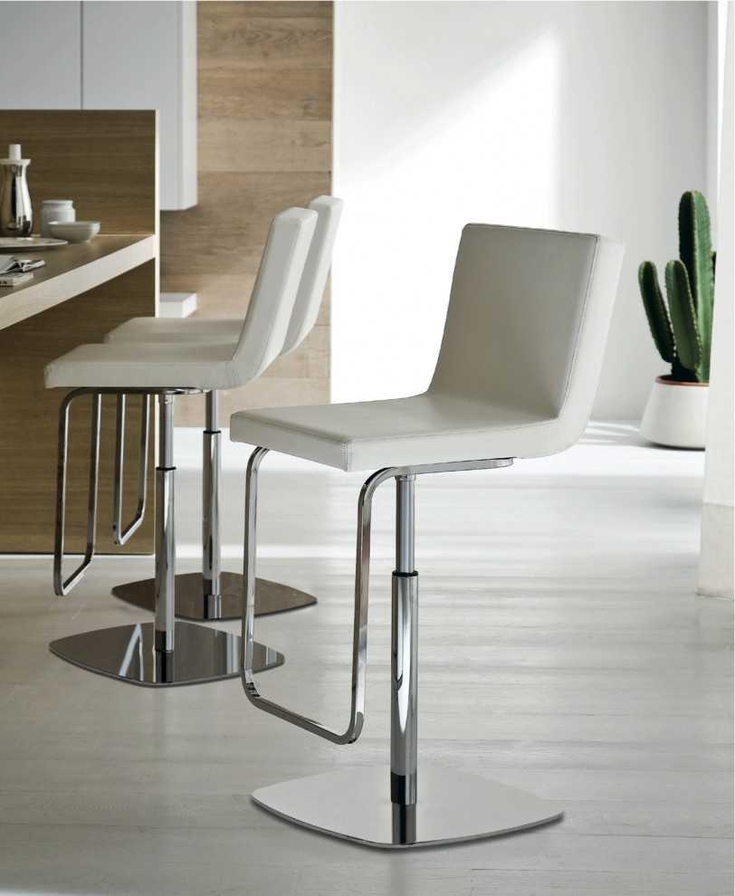 Но барные стулья с регулируемой ножкой, благодаря своим преимуществам, помогают решить эту проблему. Так, на них можно сидеть и за высокой барной стойкой, и за обычным столом, опустив сидение вниз.