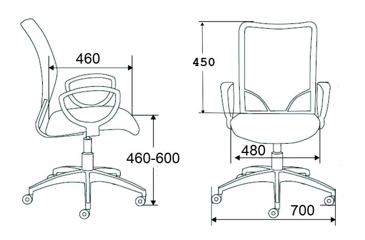 Рекомендуемый размер офисной мебели: ширина от 40 см, такая же глубина, регулируется по высоте в пределах 40-45 см, можно наклонять на 15 градусов вперед и 5 градусов назад. Наклон задней поверхности должен составлять около 30 градусов, подлокотники должны быть не менее 25 см в длину и не уже 6 см.
