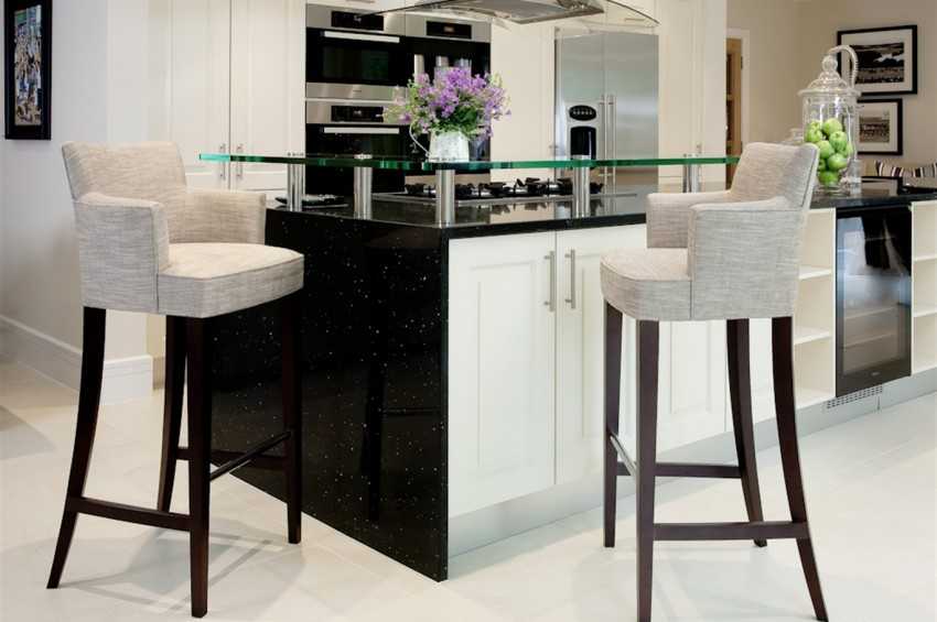 Расположение барной стойки. Если вблизи нее расположена плита или рабочая зона кухни, то материал сиденья должен быть устойчив к внешним воздействиям. Не стоит приобретать стулья с кожаной или текстильной обивкой, на которой легко остаются пятна от жира, сока и пр. Это же касается сидений из бамбука или необработанной древесины.