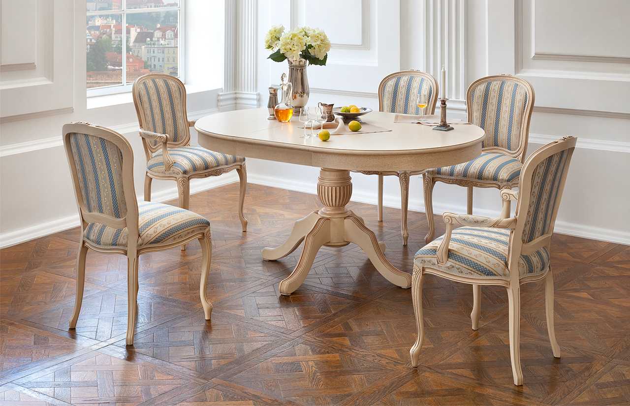 Как правило, это деревянная мебель с текстильной или натуральной обивкой из кожи. Классические стулья всегда основательны и надёжны, поэтому у них обязательно должна присутствовать спинка и подлокотники.