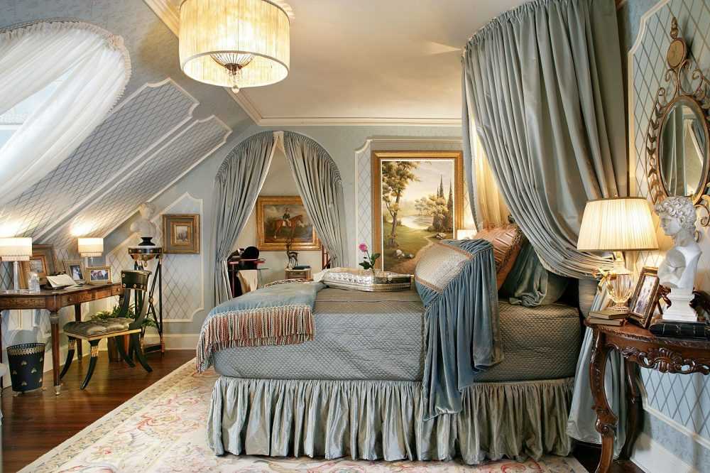 аксессуары – интерьер спален в классическом стиле будет несовершенен без эффектных предметов декора. В интерьере нет места неоформленным «голым стенам». Различные статуэтки, картины, вазы для цветов – забудьте о лаконичности, но все элементы и предметы должны быть выдержаны в едином стиле