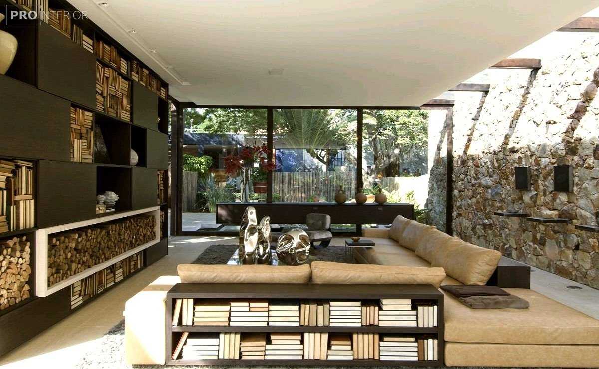Три основных материала, которые задействованы для внутренней отделки дома: стекло, дерево и природный камень, который особенно важен, он своеобразной лентой проходит через весь дом, объединяя в единое цело все элементы декора. Внешняя каменная мозаика и антиквариат внутри дома создают незримую связь между экстерьером и интерьером, а все вместе позволило получить настоящую атмосферу зрелищности.