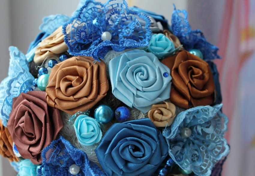 Если вы изготавливаете букет невесты из атласных лент своими руками, постарайтесь не использовать скрепки, иголки или другие колющие материалы, чтобы избежать возможности пораниться. Качественный клей прекрасно справится со своей задачей, сделав ваш аксессуар прочным и устойчивым.