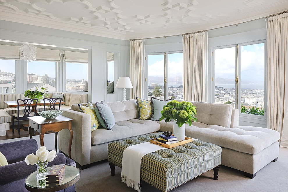 - Большие – они выше спинки дивана. В основном это подушки светлого оттенка.