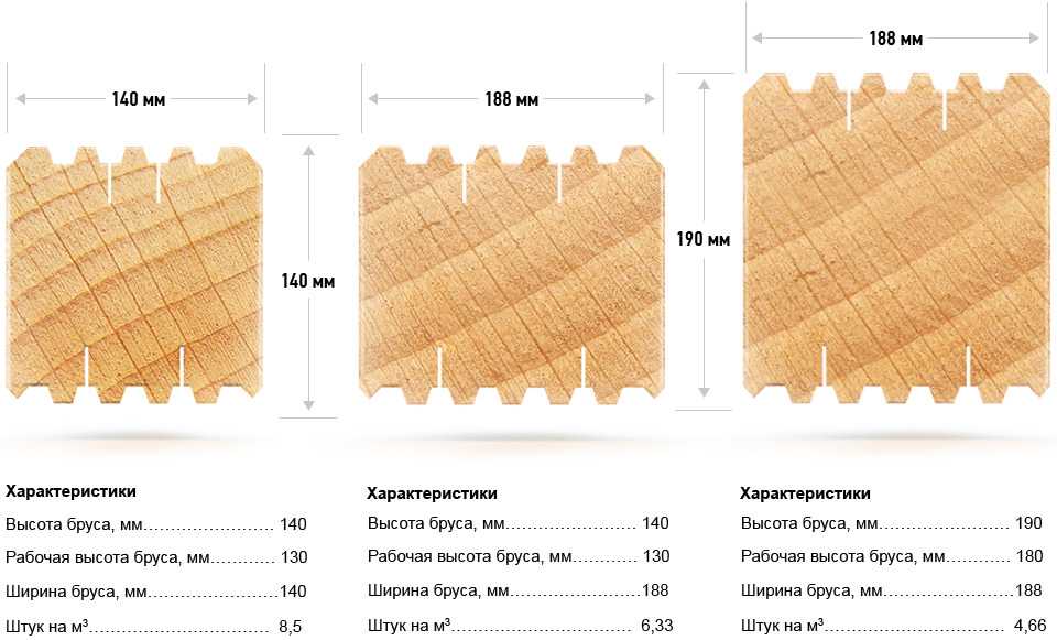 Для строительства домов выбирают древесину с наибольшим сечением и большим количеством шипов, так как такая конструкция обладает большей теплоизоляцией и прочностью. Для строений полегче, берут брус с меньшим сечением.