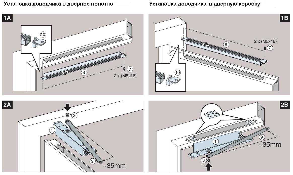 - подробно изучить инструкции по доводчику, точно следуя каждому описанному шагу;