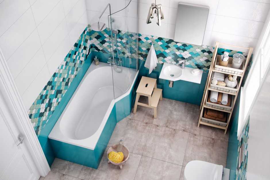 Еще одним вариантом ванны для совмещенного санузла являются ванны углового типа, которые можно купить в разном размере, от маленького, до вполне габаритного.