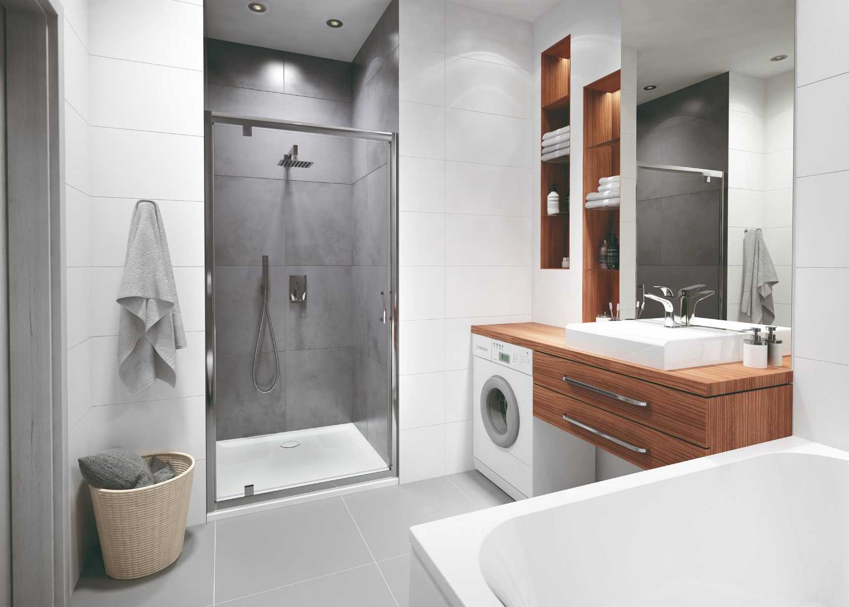 - Возможность сэкономить пространство. Если ванная комната имеет маленькую площадь, а в ней кроме места для принятия водных процедур должна быть раковина и стиральная машинка, то душевая кабина в этом случае – оптимальный вариант.