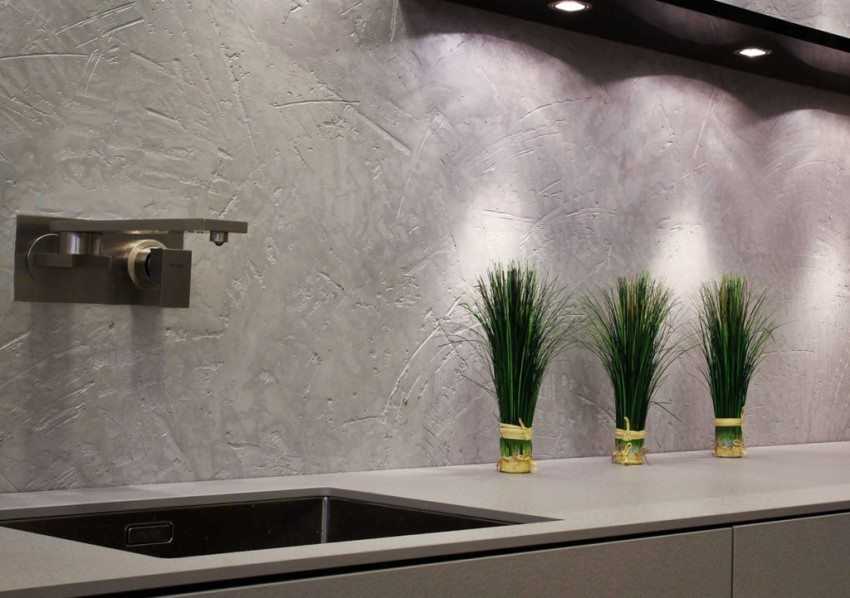 Гидроизоляционные свойства декоративной штукатурки позволяют использовать ее как на кухне, так и в ванной комнате