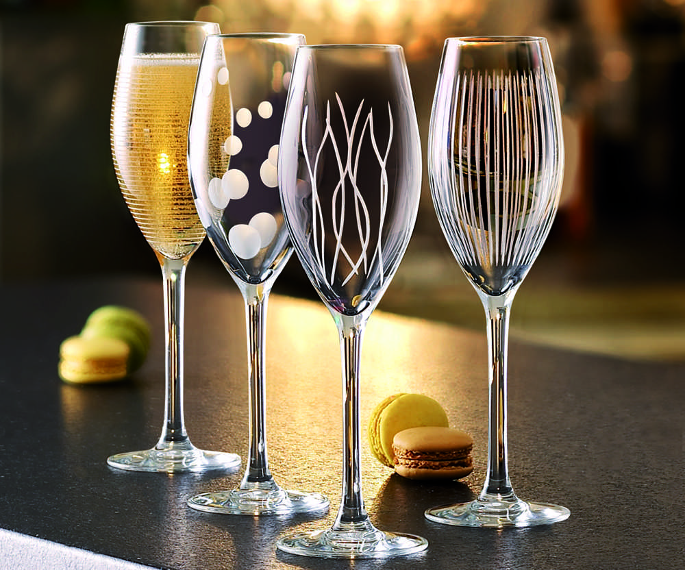 Красивая посуда изящной формы является одним из главных украшений торжественного стола. Эффектный внешний вид фужеров с лепниной, гравировкой, инкрустацией драгоценными камнями или граненой поверхностью хрусталя, излучающего блеск, приковывает взгляд окружающих и вызывает желание вновь и вновь насладиться вкусом игристого вина.