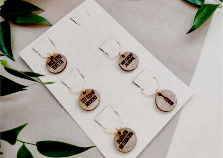 Эти приспособления сделаны из натурального дерева, поэтому их не рекомендуется мыть под проточной водой или посредством посудомоечной машины. Для последующего ухода достаточно протирать изделия сухой и мягкой тряпочкой. Прекрасный вариант для подарка. Для того, чтобы закрепить украшение на бокале, следует воспользоваться блестящей нитью. Поверхность материала отшлифована до блеска и натерта тунговым маслом. Производятся на территории России.
