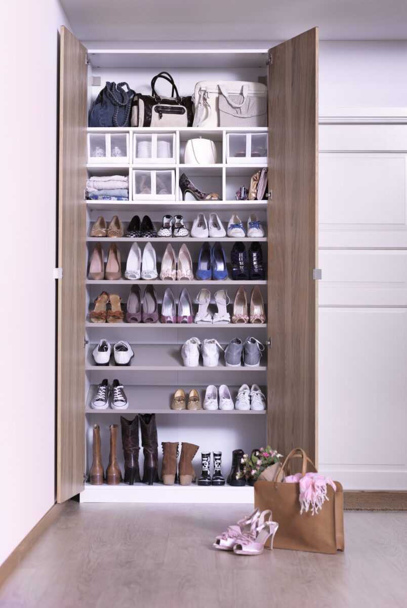 - Эстетичный внешний вид. Распашные двери скрывают обувь от посторонних взглядов и защищают ее от пыли, маленьких детей и домашних животных.