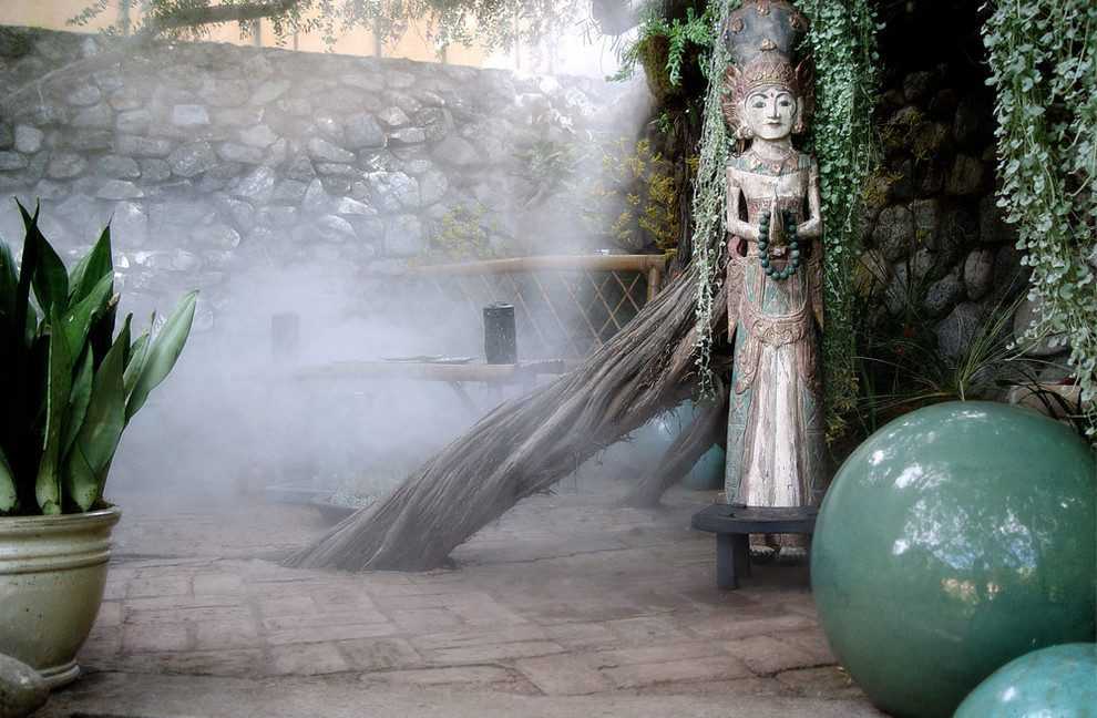 При недостаточной циркуляции воздуха в холодное время года на поверхности внешней стены может появиться сырость. Самое губительное для растений явление — перепад температур. Многие растения не выносят сквозняков. Температура в зимнем саду ночью не должна опускаться слишком низко, чтобы на растениях не появилась роса, поэтому необходима система отопления. Большинство растений, кроме, пожалуй, кактусов, страдают от излишней сухости воздуха в помещении. От этого желтеют листья, особенно на кончиках. Многим растениям необходимо постоянное опрыскивание. Для зимнего сада, где растения высажены в грунт, замечательный выход из положения – система автоматического микрокапельного полива.