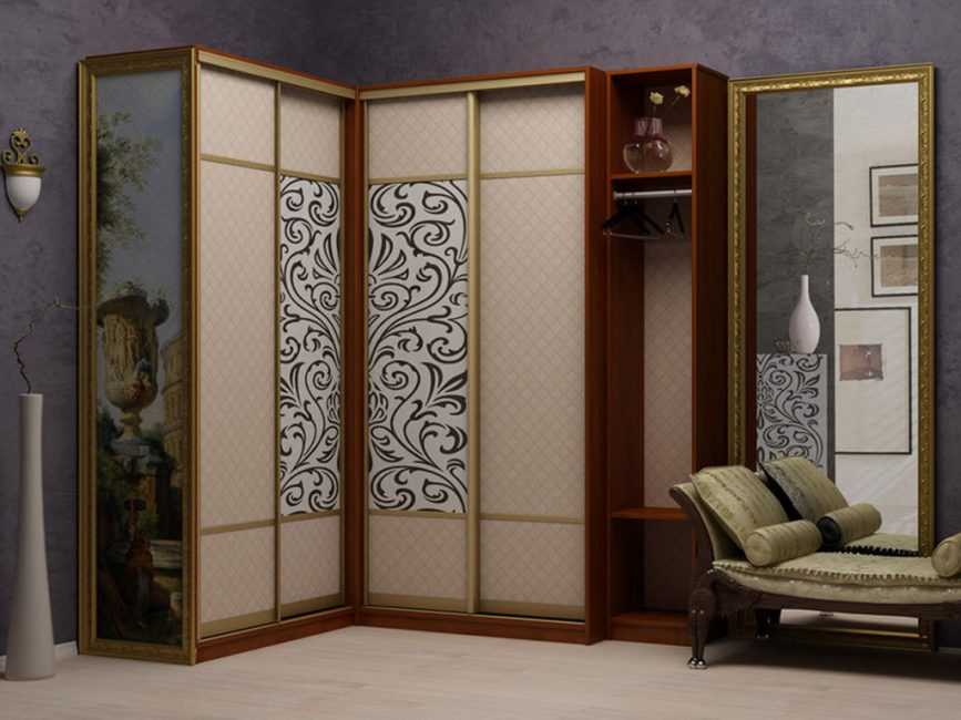 - Зеркала. Идеальное решение для оформления фасадов распашных шкафов, установленных в небольших, узких помещений. Позволяют создать видимость ширины и простора.