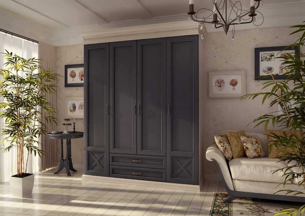 - дизайн интерьера, который будет окружать шкаф. Фасад всей мебели, которая находится внутри комнаты, должен поддерживать общее стилевое направление. В противном случае даже самый современный, надёжный, многофункциональный шкаф 4 х дверный распашной станет совершенно неуместным элементом интерьера;