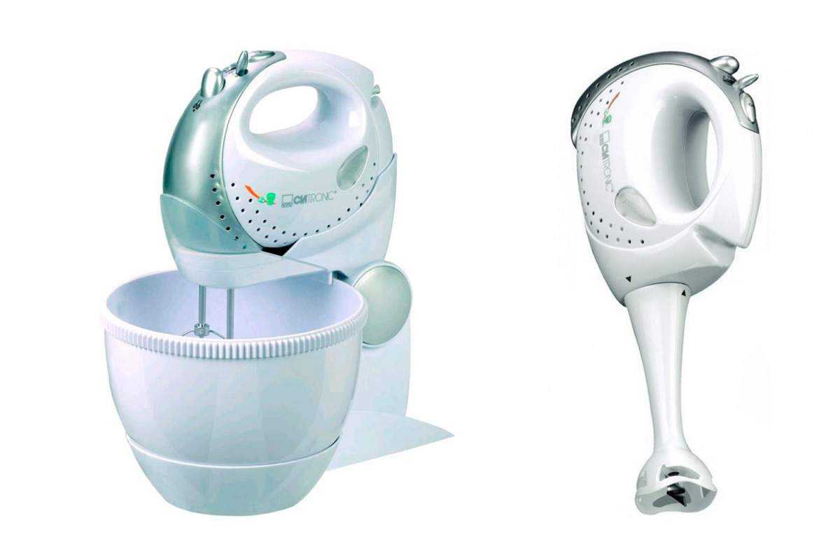 Он компактен и удобен. Состоит из пластмассового корпуса, электродвигателя, редуктора, венчиков — взбивателей, в комплекте чаще всего идет чаша и насадки – крюки.