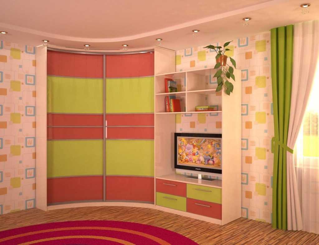 Довольно часто в оформлении пространства детских комнат используются угловые шкафы.