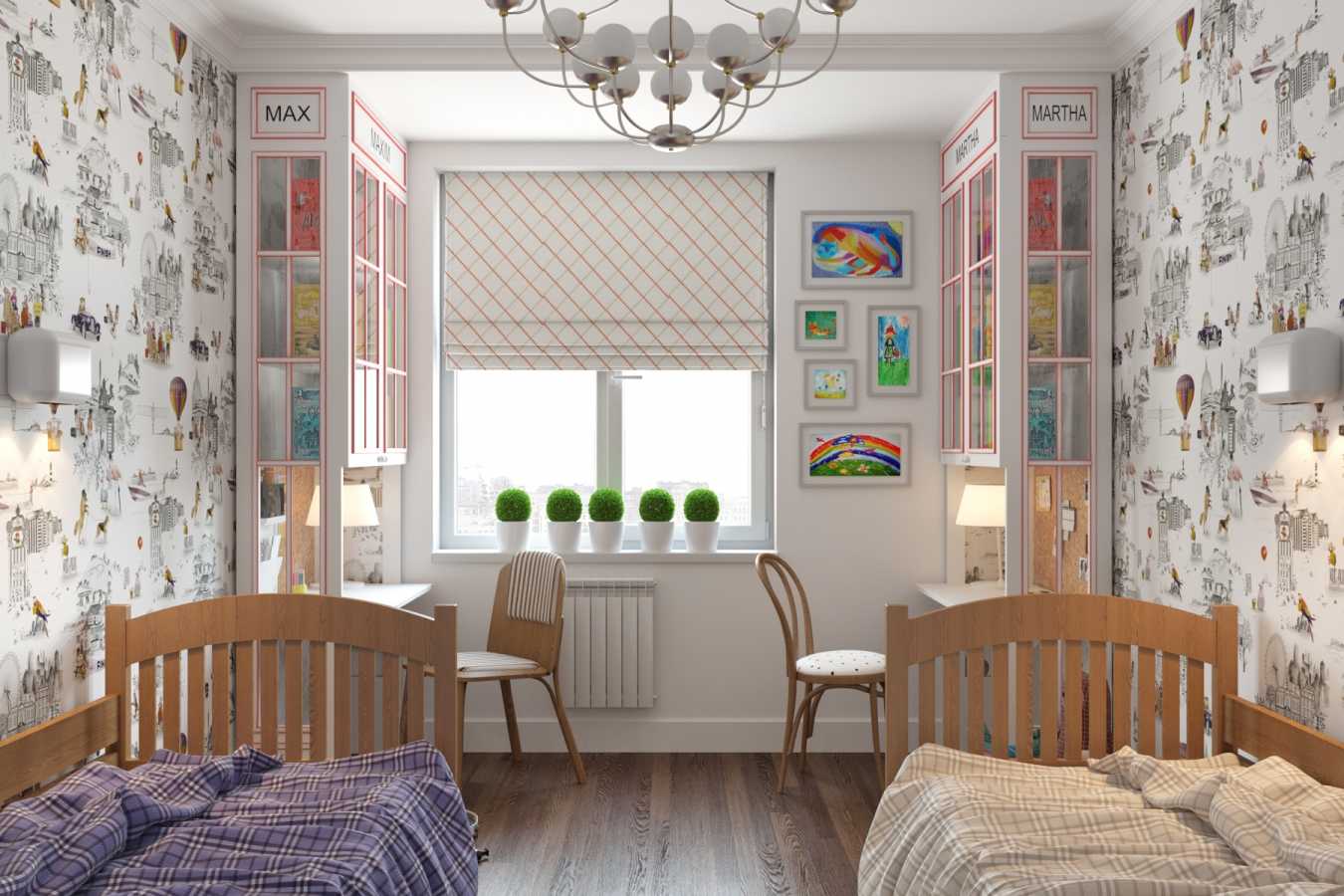 Внимательно нужно отнестись и к внутреннему наполнению шкафа. Лучше всего, если он будет разделен на две части: для одного и второго ребенка. Проектируются шкафчики для нижнего белья, ярусов для штанги и т.д. Пока дети маленькие, можно сделать акцент на вместимости, функциональности, при этом складывая детские вещи вместе. Но когда мальчик и девочка подрастут, придется делить между ними пространство пополам.