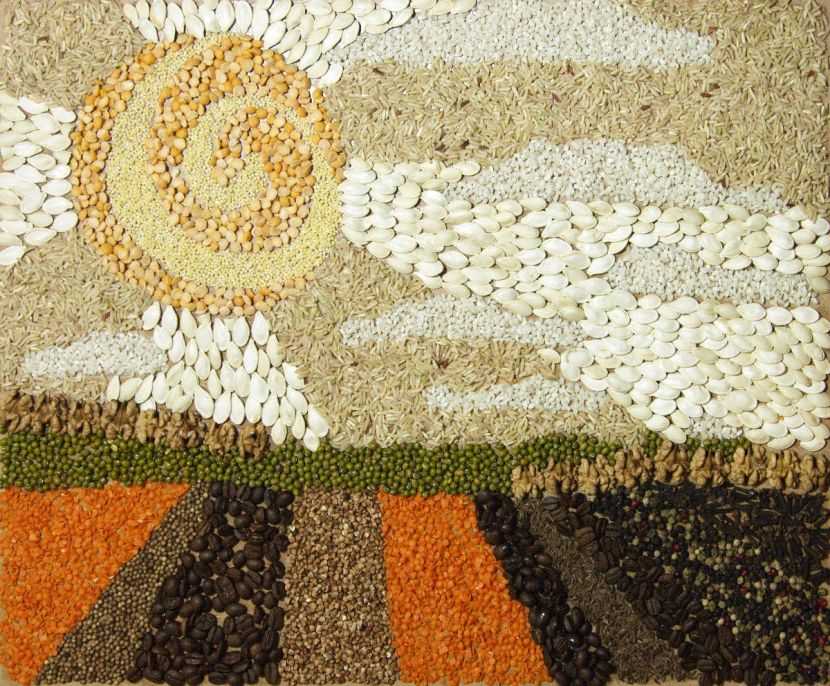 Сделайте дорожки их чечевицы или бобов. Дайте картине просохнуть, после чего оформляйте рамкой.