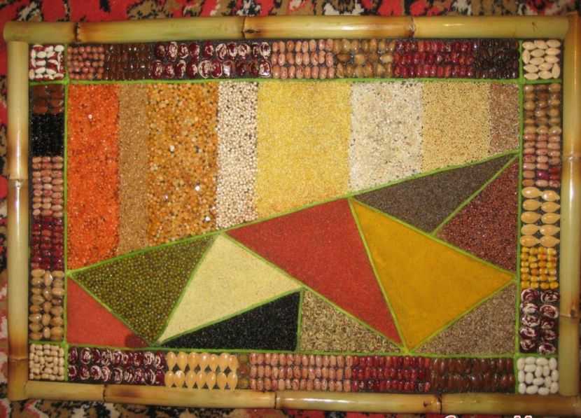 А вот и идеи поделок из круп и макарон для творческих взрослых.