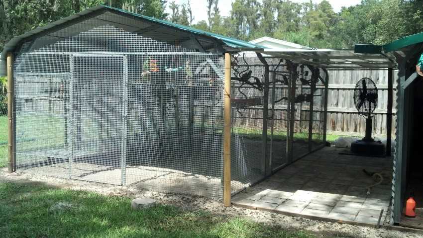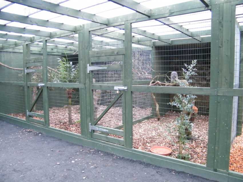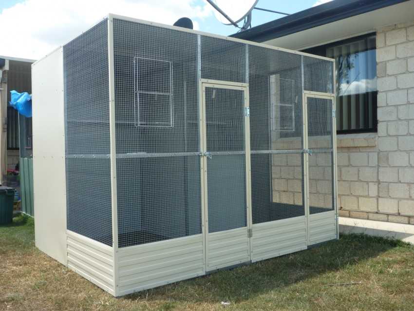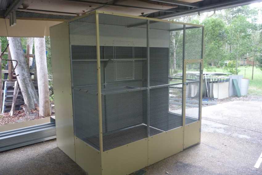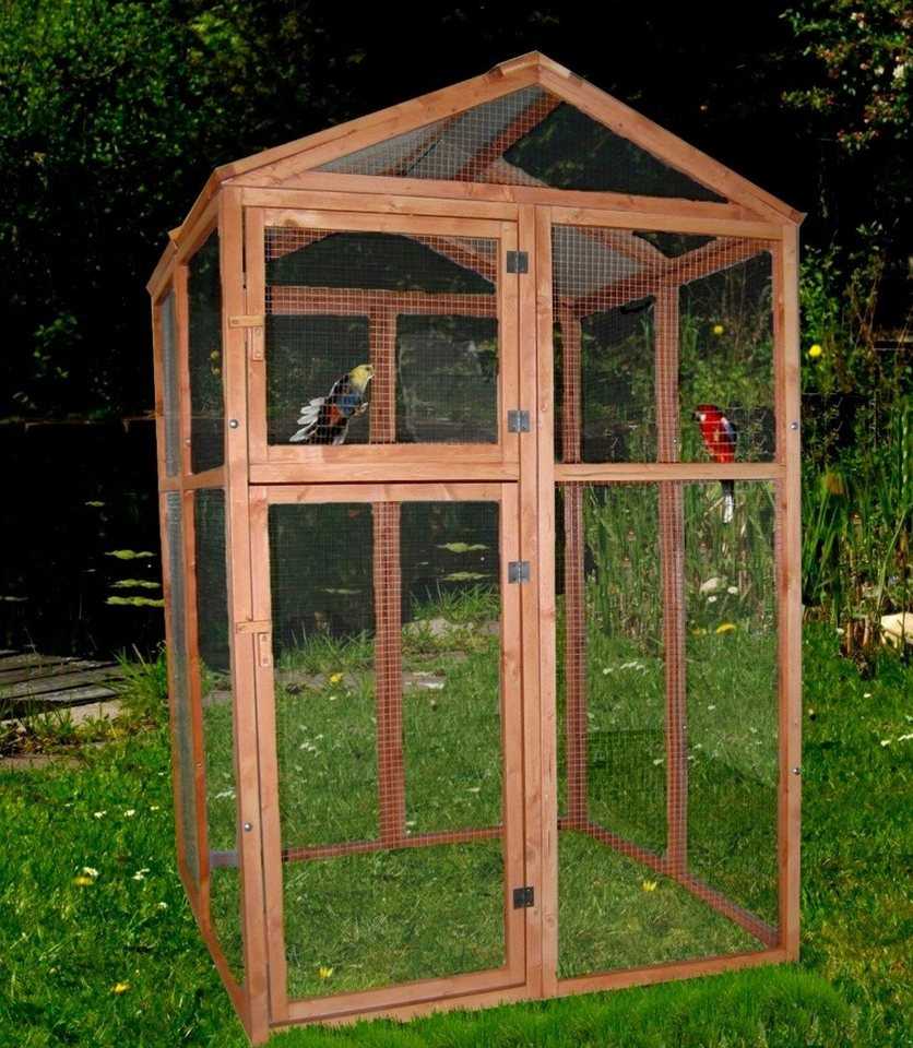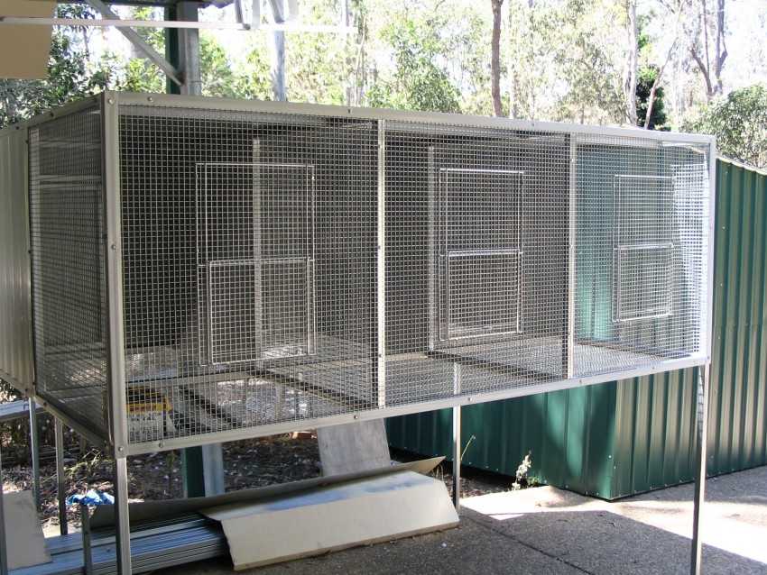 С виду типовая клетка напоминает блок, состоящий из двух секций, в каждой из которых можно содержать по одной взрослой особи. Чаще всего в строительстве применяют древесину и фанеру для каркаса и внутренней отделки, металлическую сетку с мелкими ячейками для стен и перегородок, а также шифер для кровли.