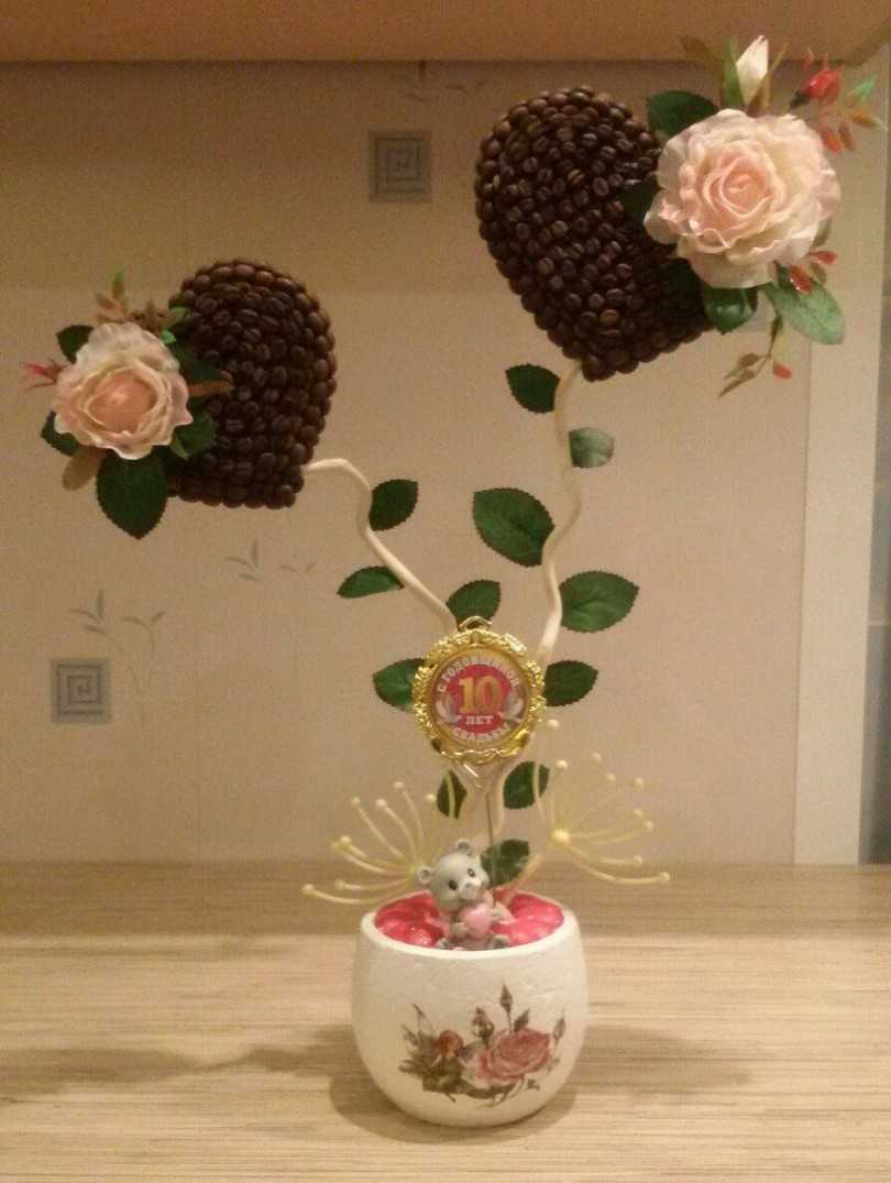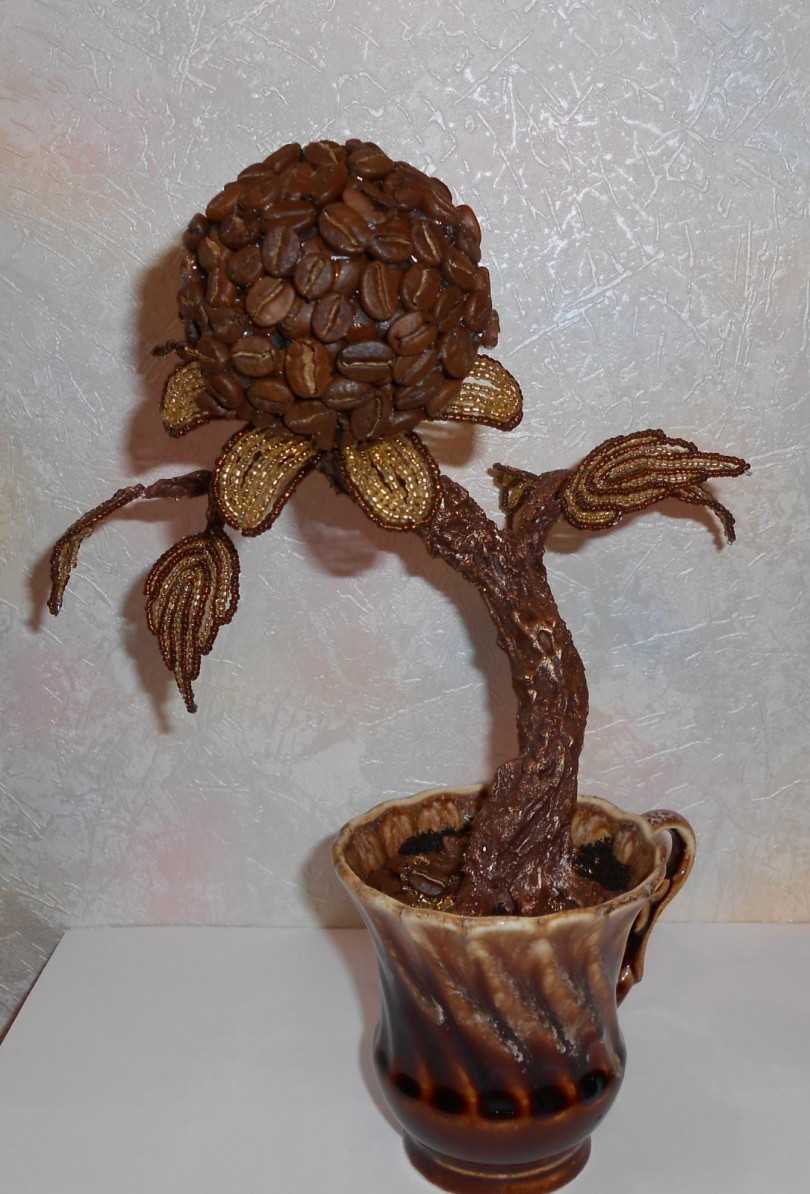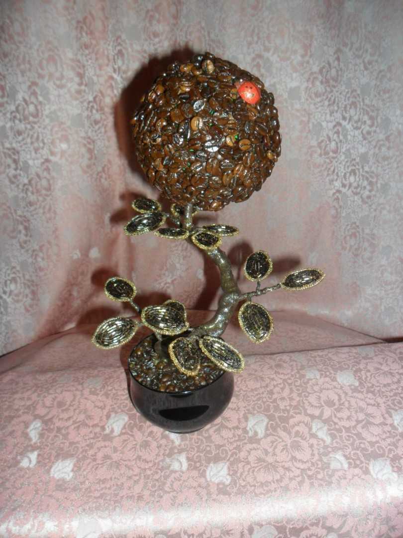 Как сделать своими руками поделки в виде фруктового и денежного дерева из кофейных зёрен
