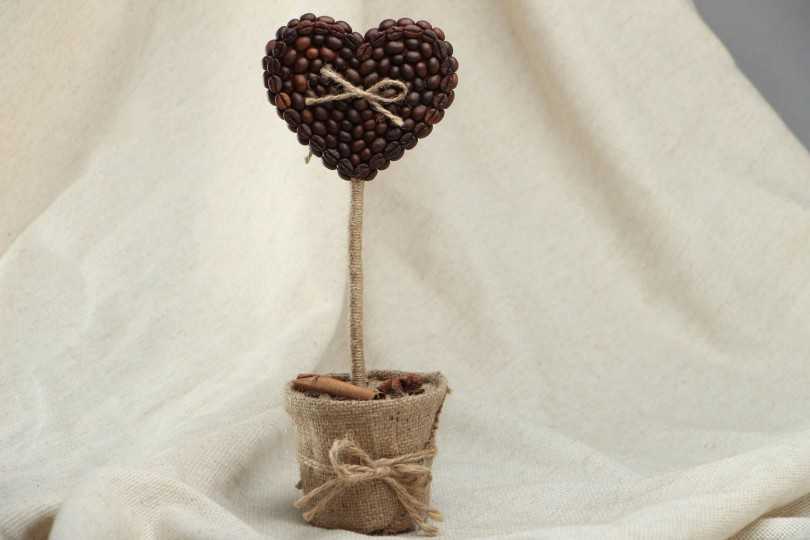 Как сделать своими руками дерево-валентинку из кофейных зёрен в виде сердца