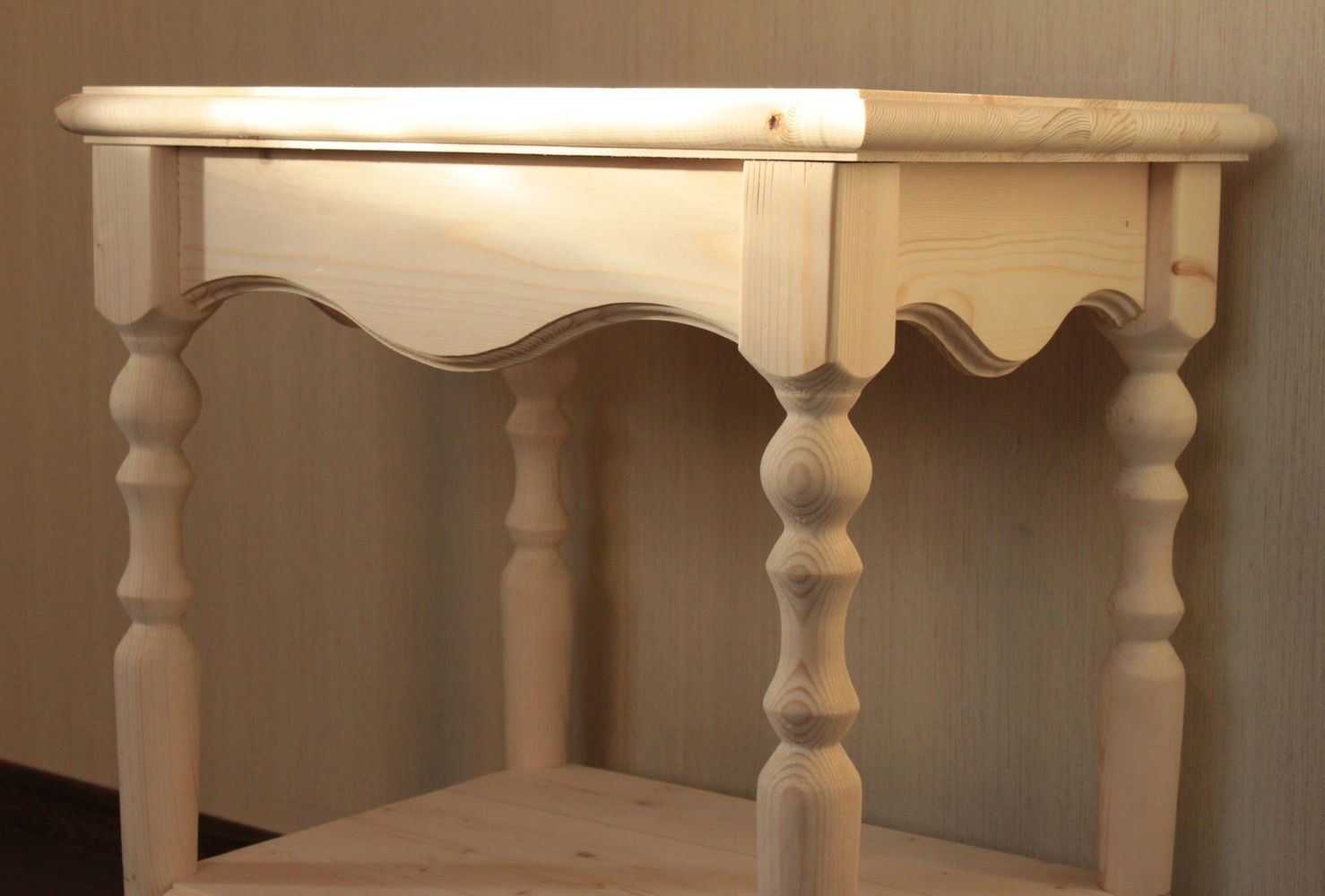 Если столик будет покрыт лаком грунтовать не нужно. Вместо этого деталь обрабатывают морилкой.