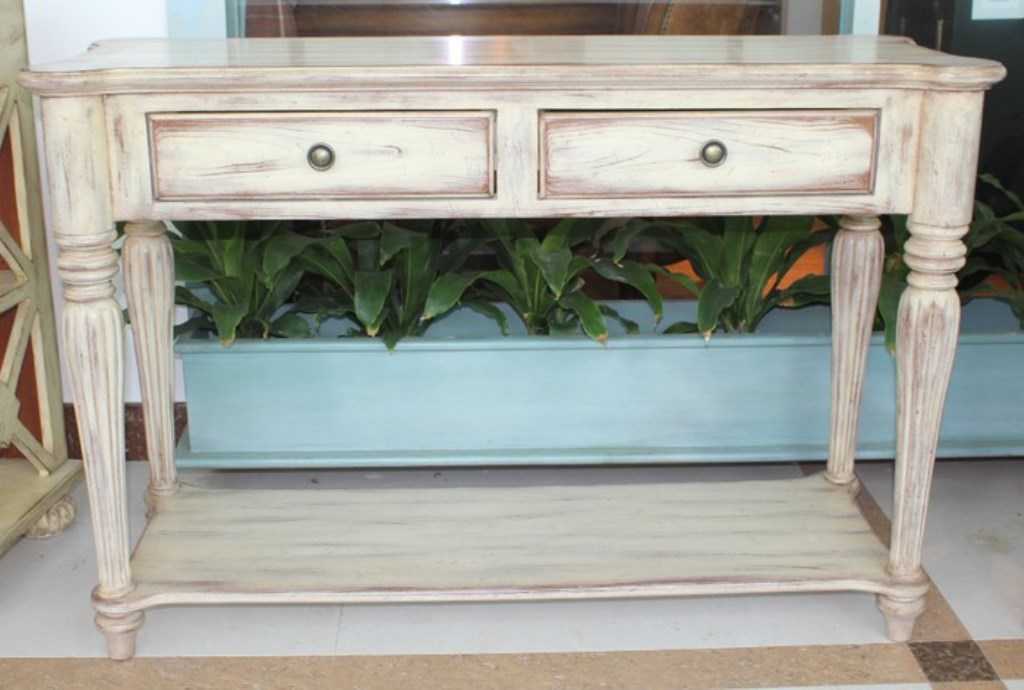 Красивый консольный столик в стиле прованс с четырьмя выдвижными ящичками
