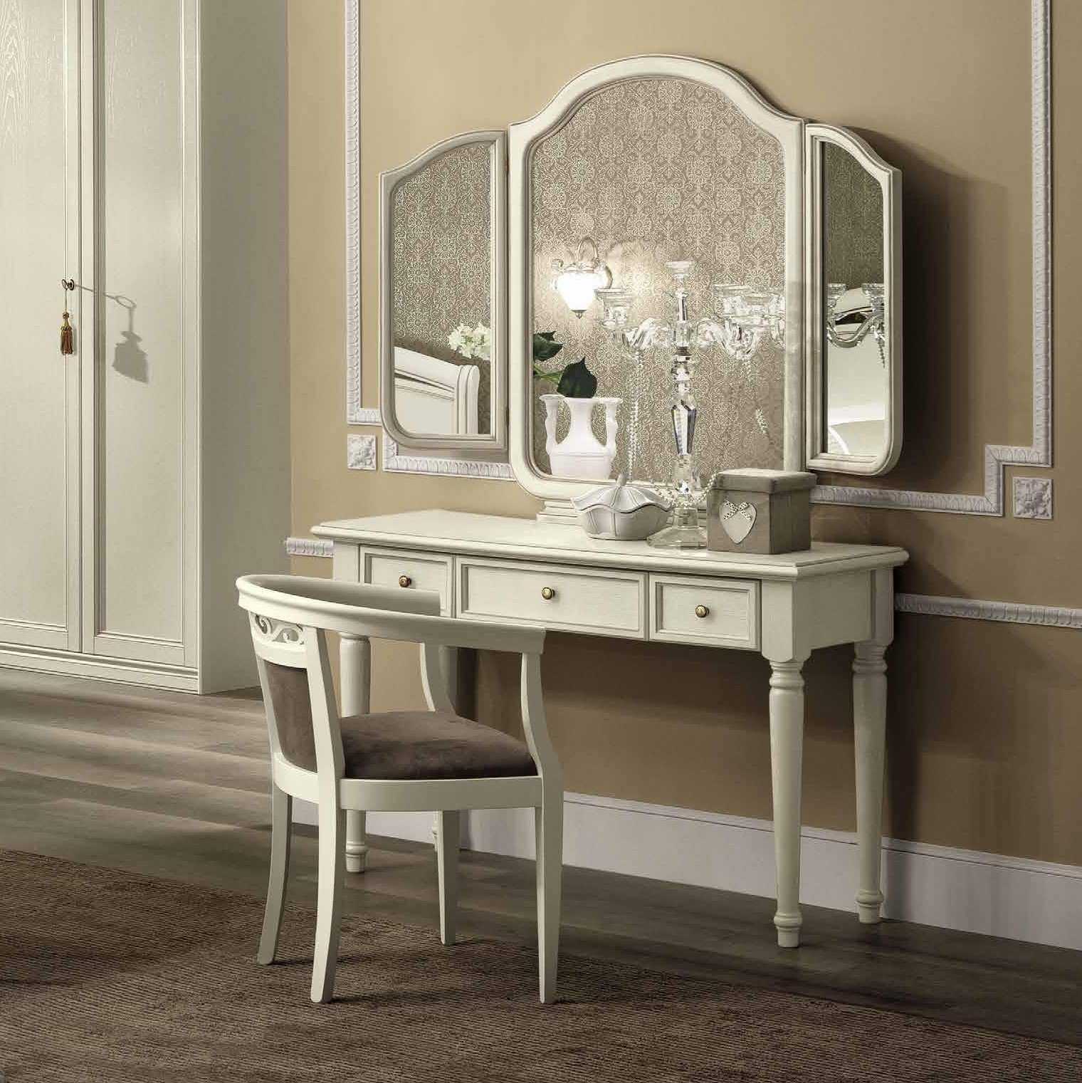 Также столики ставят в спальнях и будуарах. Обычно на них ставят зеркало (или их крепят к стене под зеркалом), косметические принадлежности.