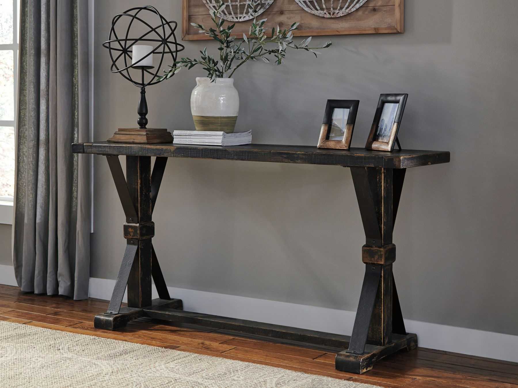 Органично смотрится консольный столик, находящийся за спинкой дивана, расположенного посередине комнаты. Его можно будет использовать, как барную стойку или разместить там комнатные цветы в красивых горшках.