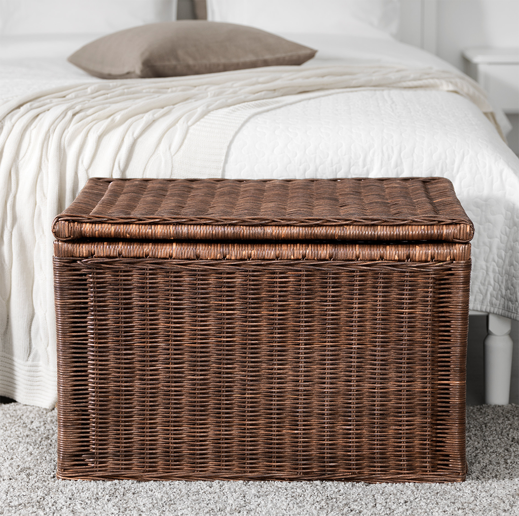 Плетеные коробки, как правило, производят из лозы в виде корзинок или ящиков. Такой вариант не просто позволит решить вопрос с хранением белья и одежды, но и станет отличным украшением интерьера. В любом стиле, где присутствует дерево, плетеные коробки прекрасно дополнят дизайн комнаты, создавая уютную атмосферу.