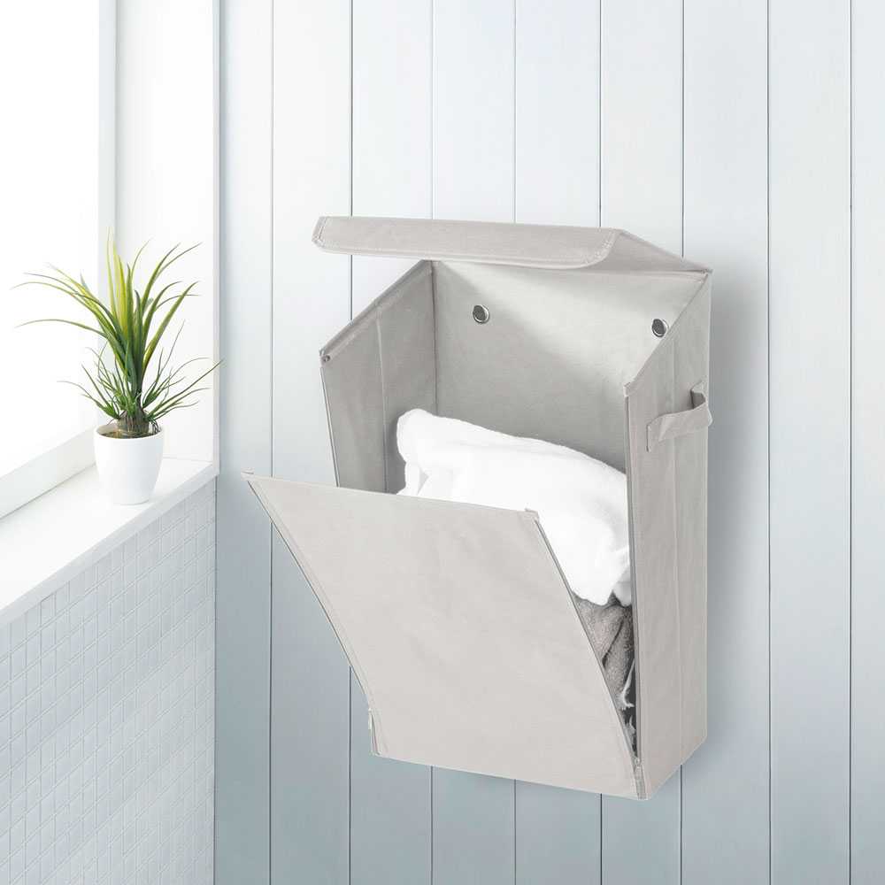 Если же вам нужно максимально сберечь свободное пространство, обратите внимание на подвесные корзины. Чаще всего это небольшие мешочки из ткани, в которые помещается не очень много белья, но зато они практически не занимают места