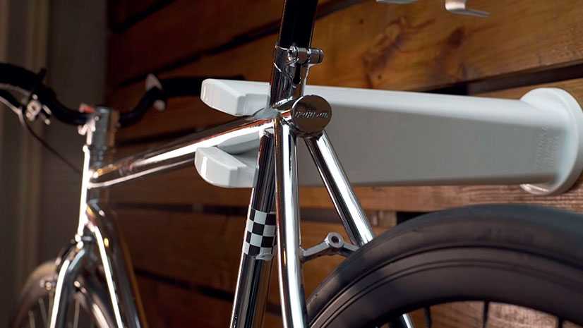 отдельный крючок в виде скобы. Для надежного хранения на стену устанавливается два крюка, а велосипед подвешивается за раму;