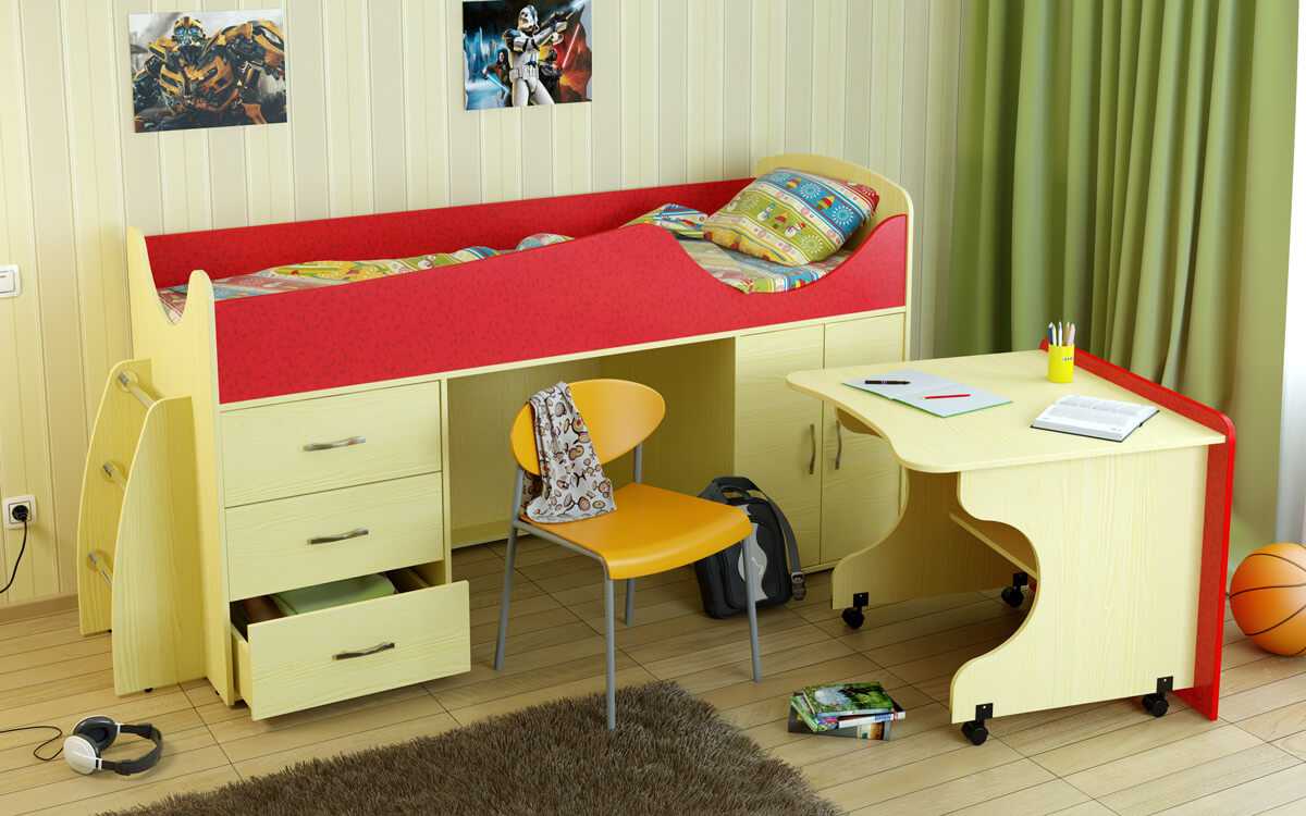Обычно перед родителями при меблировке детского помещения встает вопрос: приобрести кровать-чердак с размещенной (расположенной) в подматрасном пространстве рабочей зоной или подобрать модель комбинированного спального места или модели-трансформера, оборудованного дополнительными приспособлениями для игр, обучения или выполнения домашних заданий. Каждый из этих вариантов имеет своим достоинства и недостатки и прежде чем остановиться на конкретном экземпляре следует взвесить все положительные и отрицательные стороны комбинированной мебели.
