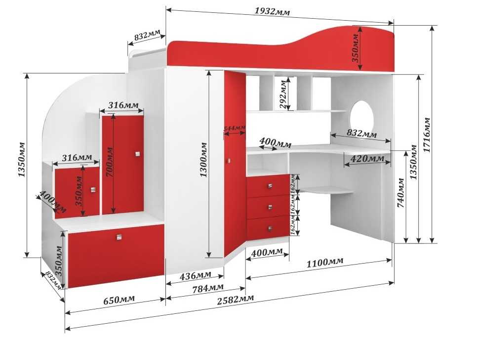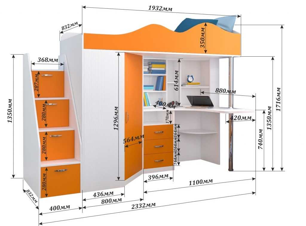 При составлении чертежа важно убедиться в надежности будущей кровати, особенно, если на ней будет спать ребенок. При необходимости можно увеличивать высоту боковых бортов, ширину ступеней лестницы.