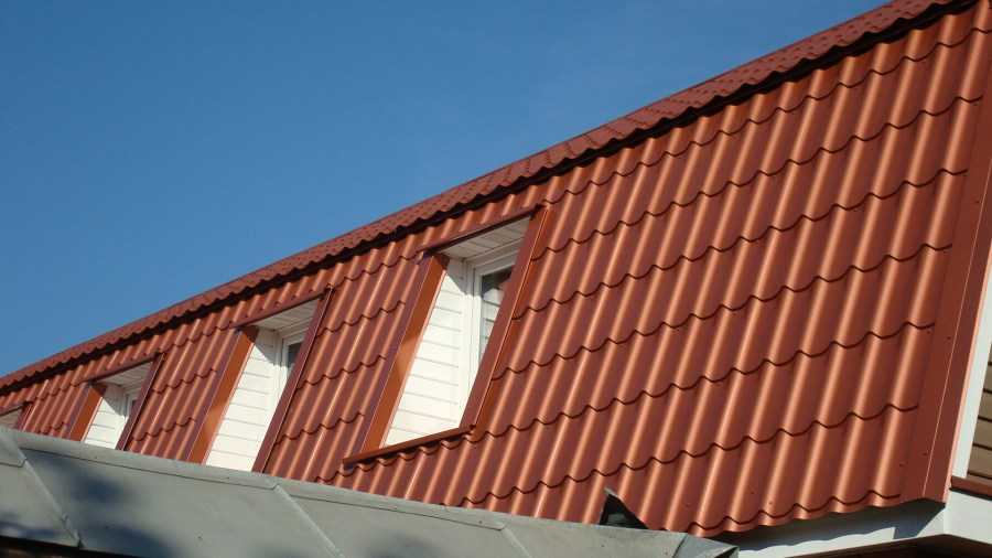В отличие от металлочерепицы, профнастил можно легко монтировать на скат с углом наклона до 8 градусов.