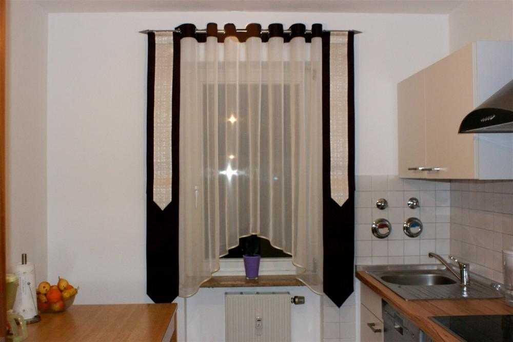Такие варианты используют на кухне, где уместны укороченные модели гардин, не касающиеся пола. Они гармоничны в любых стилистических решениях.