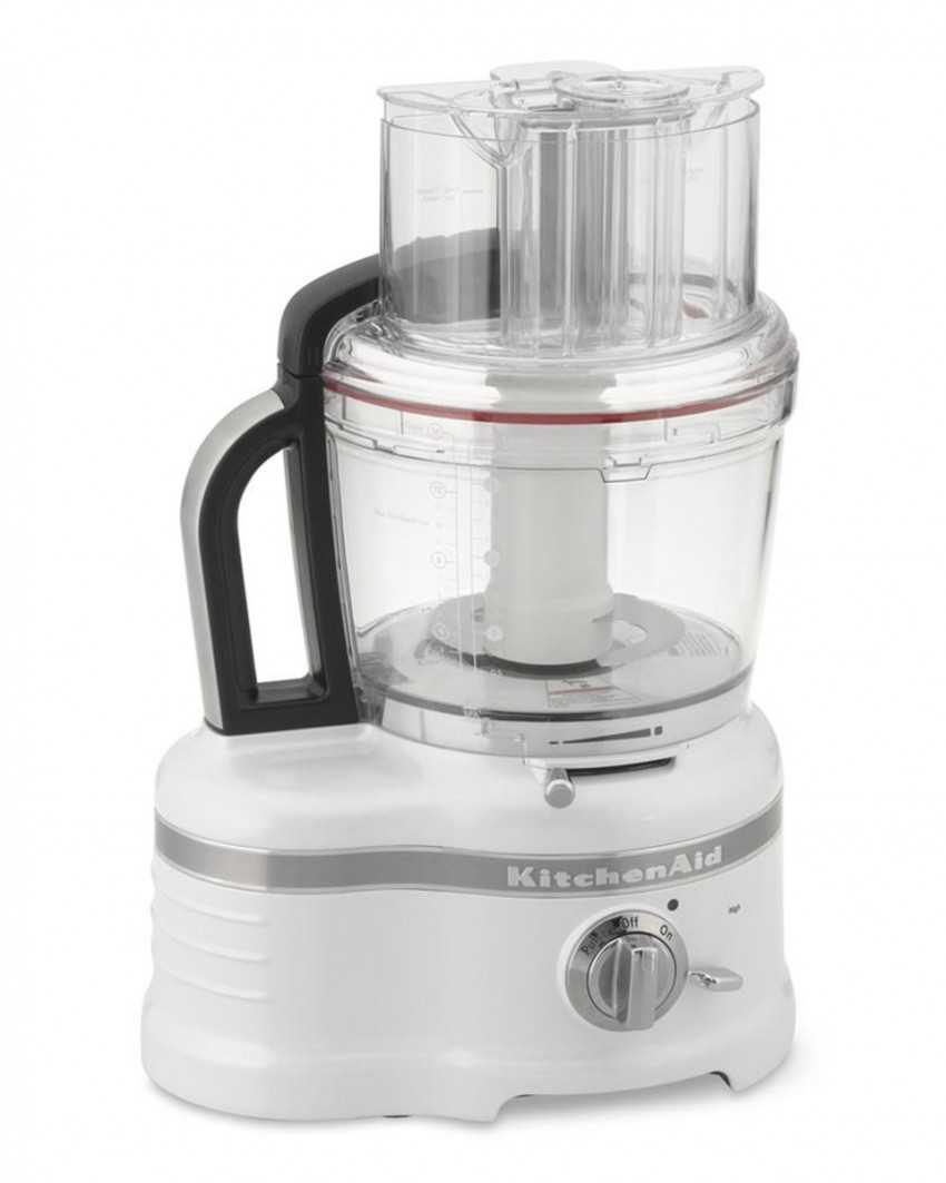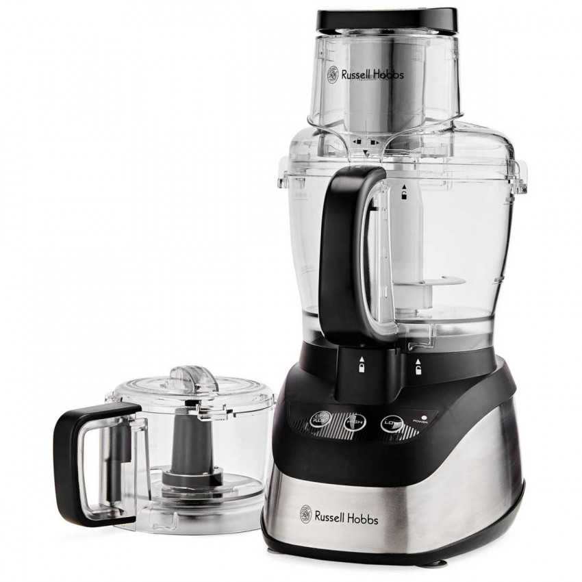 Ручной многофункциональный агрегат. Есть тёрка, возможность измельчения ломтиками и кубиками, насадка для пюре. Хороший мотор — 1300 Вт. В комплекте также есть две чаши для измельчения и мерный стакан.