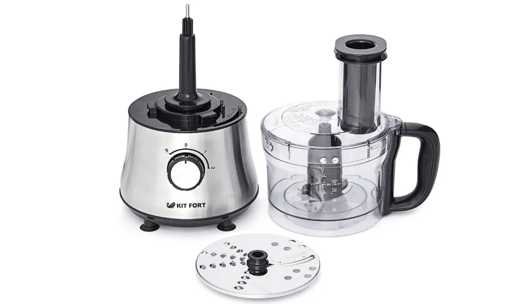 Такой прибор поможет замесить тесто или взбить крем, пюре, натереть продукты. В комбайне прорезинены ножки, что препятствует его скольжению по поверхности стола.
